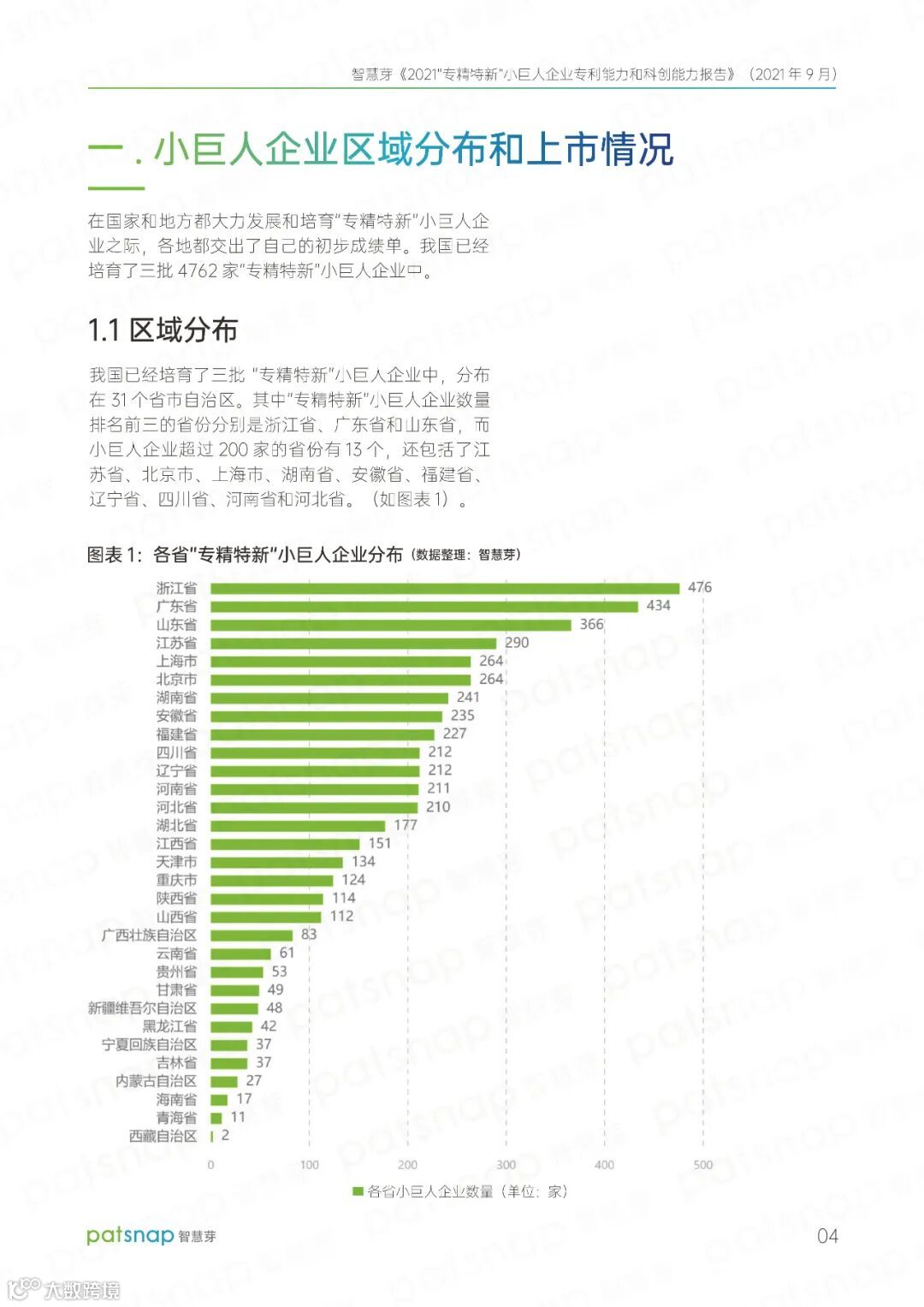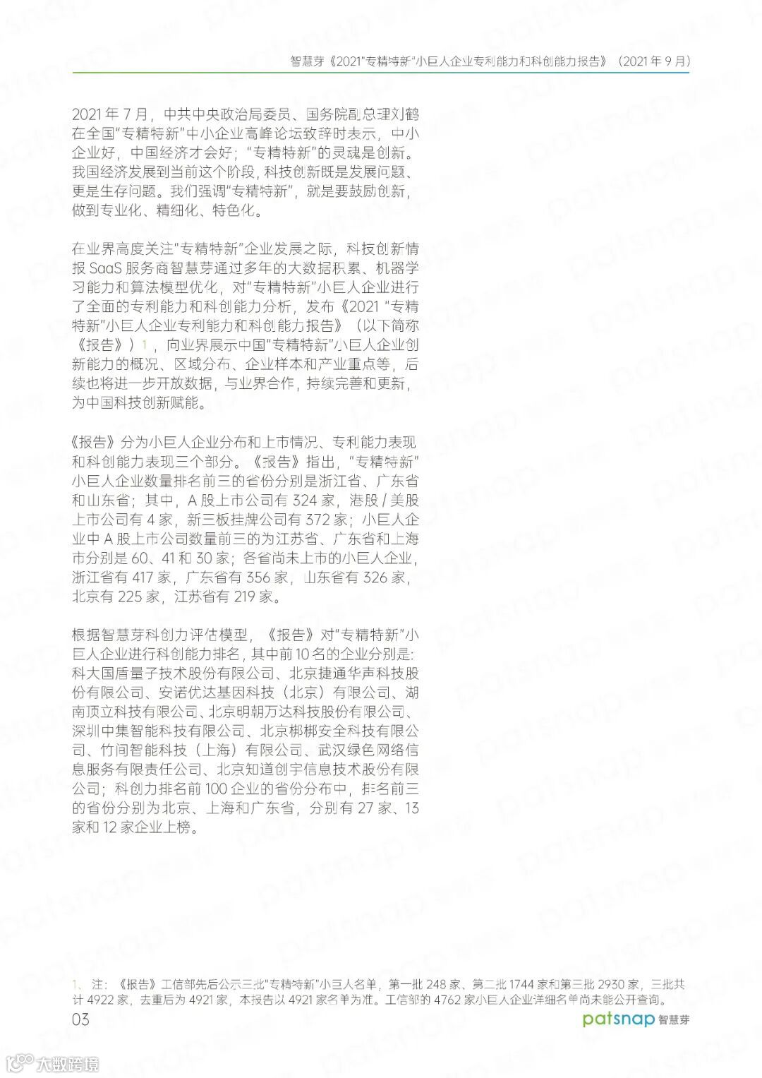 智慧芽发布《2021“专精特新”小巨人企业专利能力和科创力报告》