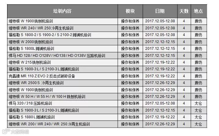 看到这个标题,迅速点击进来的维粉们,一定已经迫不及待的想要了解这次培训的信息了吧?你做得非常正确,因为本次培训课程,每期报名名额仅限20人,维特根中国2017年冬季培训计划12月份课程即将拉开帷幕!