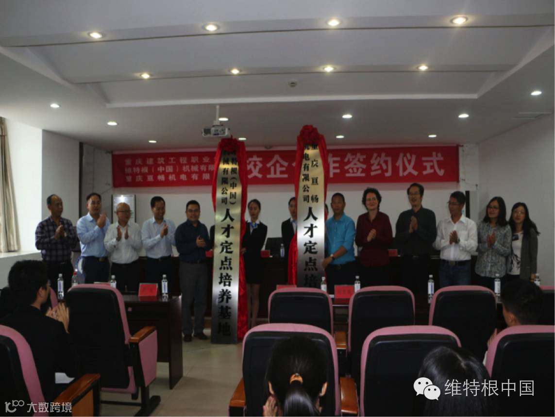 10月20日,维特根集团、重庆亘畅机电有限公司与重庆建筑工程职业学院正式进行了校企合作人才项目签约。这是继维特根集团、广州怡壮与广州市公用事业技师学院达成的校企合作人才项目,在广州市成立由维特根集团、代理商和学校三方合作的华南培训中心后,在中国区域实施的第二家校企合作人才项目。依托这一项目,也将成立校企三方合作的维特根集团西南地区人才培训中心。