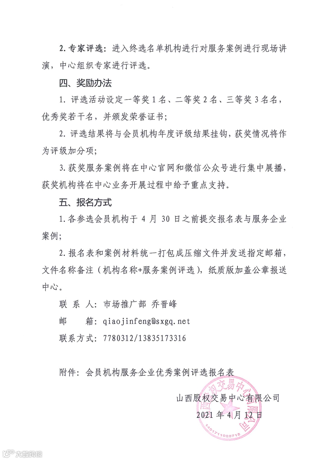 关于举办会员机构服务企业优秀案例评选活动的通知