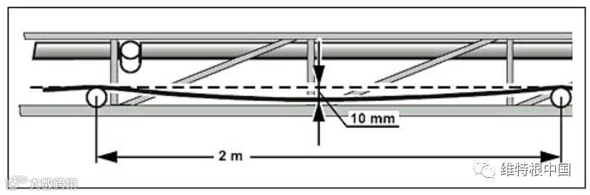 传送带必须在下方两个支承之间形成小量垂度。例如:下方两个支承之间的距离为 2 米,垂度应约为 10 毫米。