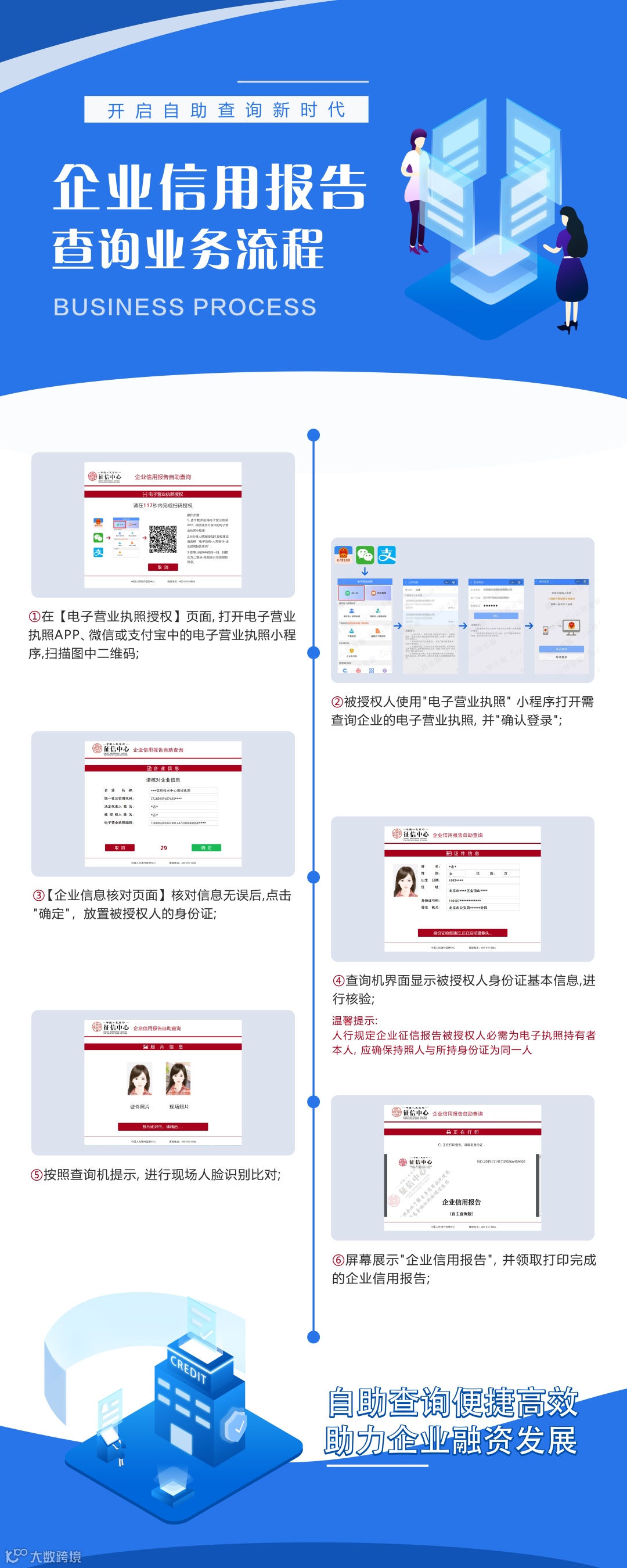 企业客户如有查询需求,可前往人民银行征信中心山西省分中心(太原市鼓楼街74号)通过企业信用报告自助查询机进行查询,办理流程如下。