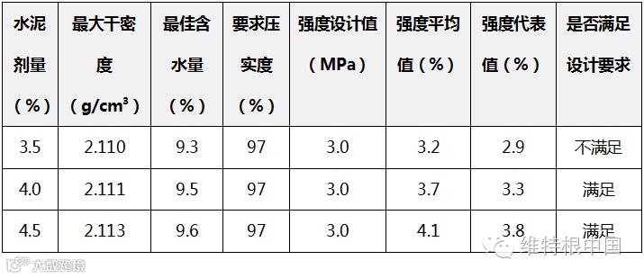 根据铣刨料筛分结果,其级配能够满足规范级配范围要求,因此没有添加新料。随后选取 3 种水泥用量,进行再生混合料各项性能指标的测试。根据测试结果,水泥用量选取 4.0%。