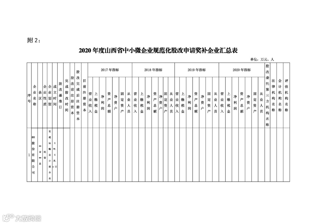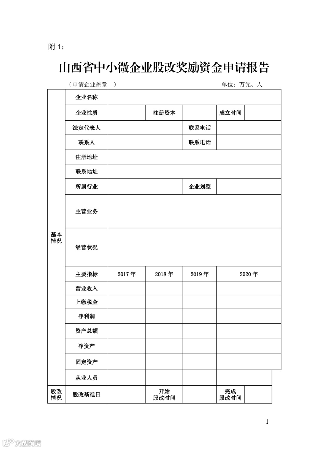 1.山西省中小微企业股改奖励资金申请报告(见附1);