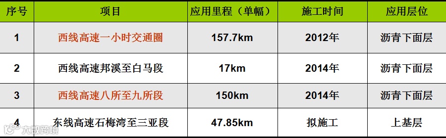 泡沫沥青冷再生技术在海南地区的应用最早从2012年G98海南环岛高速西线高速一小时交通圈开始,应用里程为157.7公里。目前单幅已有324公里路段完成施工,拟有48公里路段相继施工,应用面积超过400万平方米。