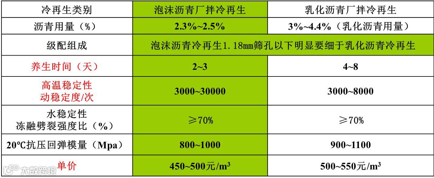 泡沫沥青冷再生与乳化沥青冷再生对比表