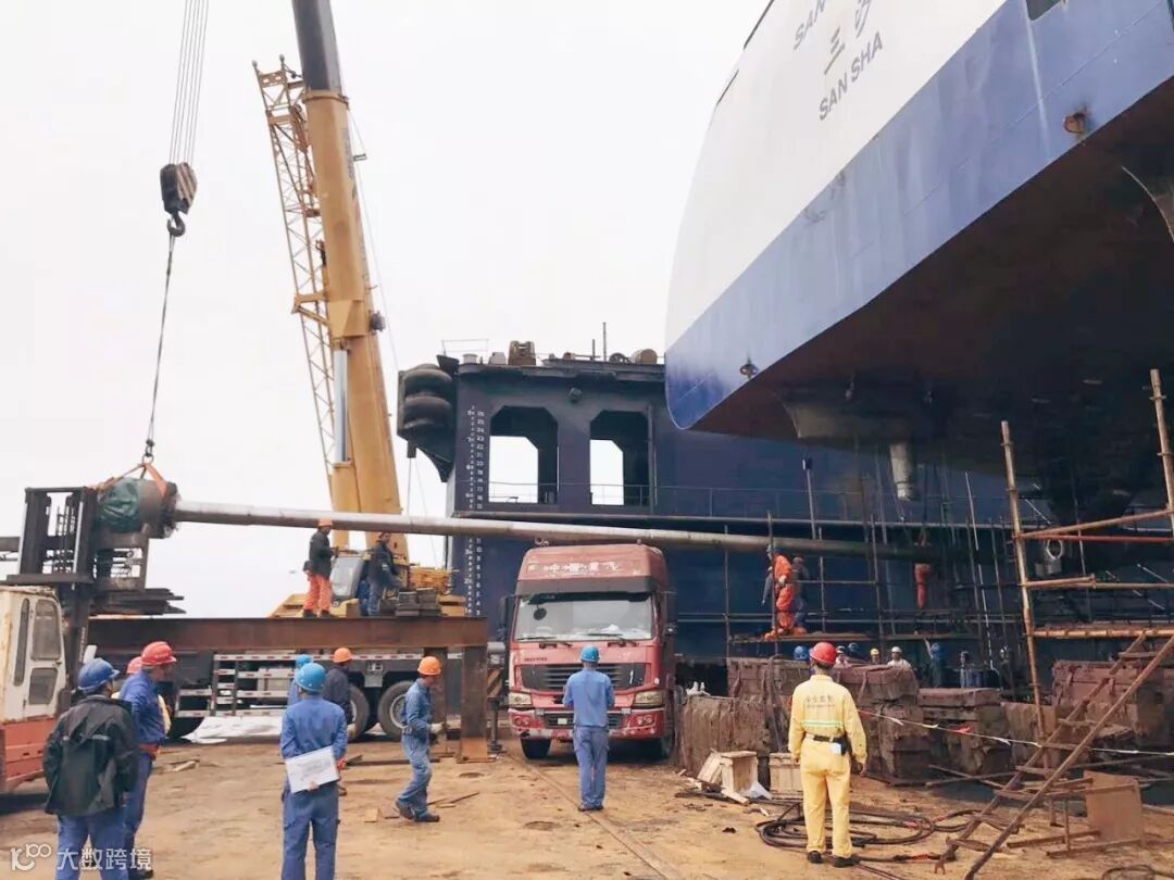 在此次修理任务中CPP工程难度较大,尾轴长17.8米,重约14吨,是目前厂内船舶修理最长的尾轴,原方案是外请浮吊配合拆轴,后来生产部门及坞修车间,勇于担当,详细策划及测量,采用拖车解决了拆轴难题,节约了成本。且该次船舶修理,很多工程之前没有承接过,能为今后的船舶修理工作积累丰富经验。