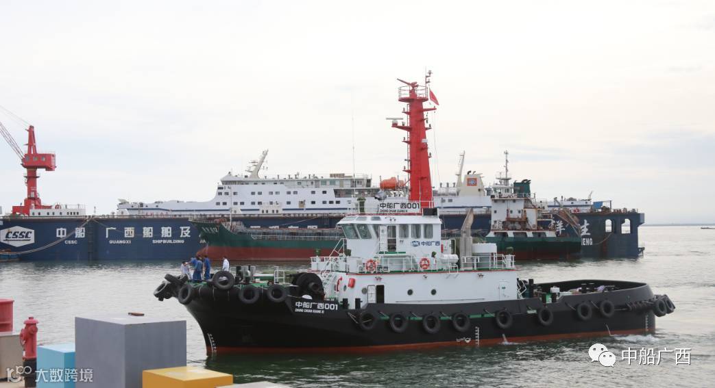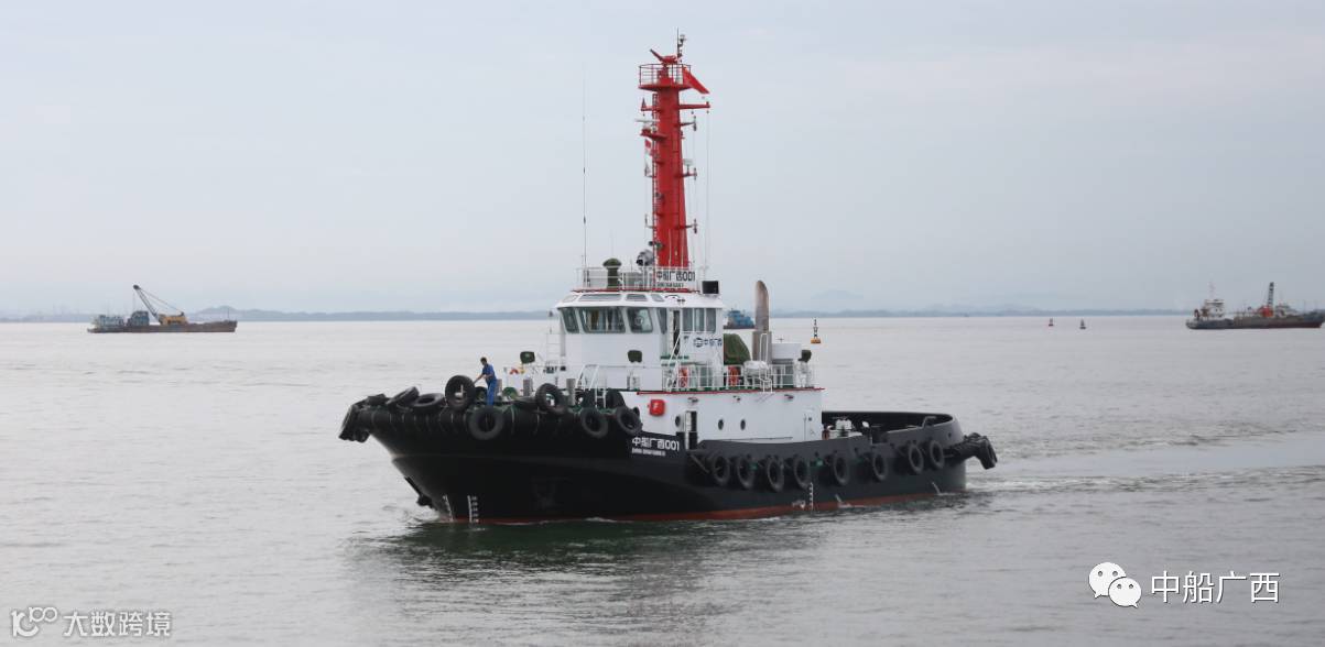 8月14日下午5时,中船广西公司委托中船桂江造船有限公司建造的全回转型拖船——“中船广西001”号拖轮顺利抵达中船钦州基地并正式交付使用。
