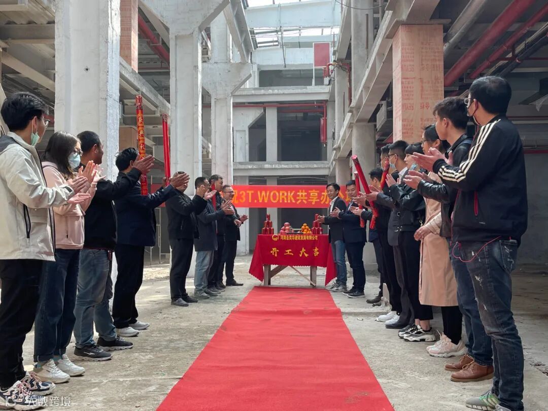 3T.WORK共享办公创始人李玄一,联合创始人苏贺,以及各施工方共同参与了开工仪式。