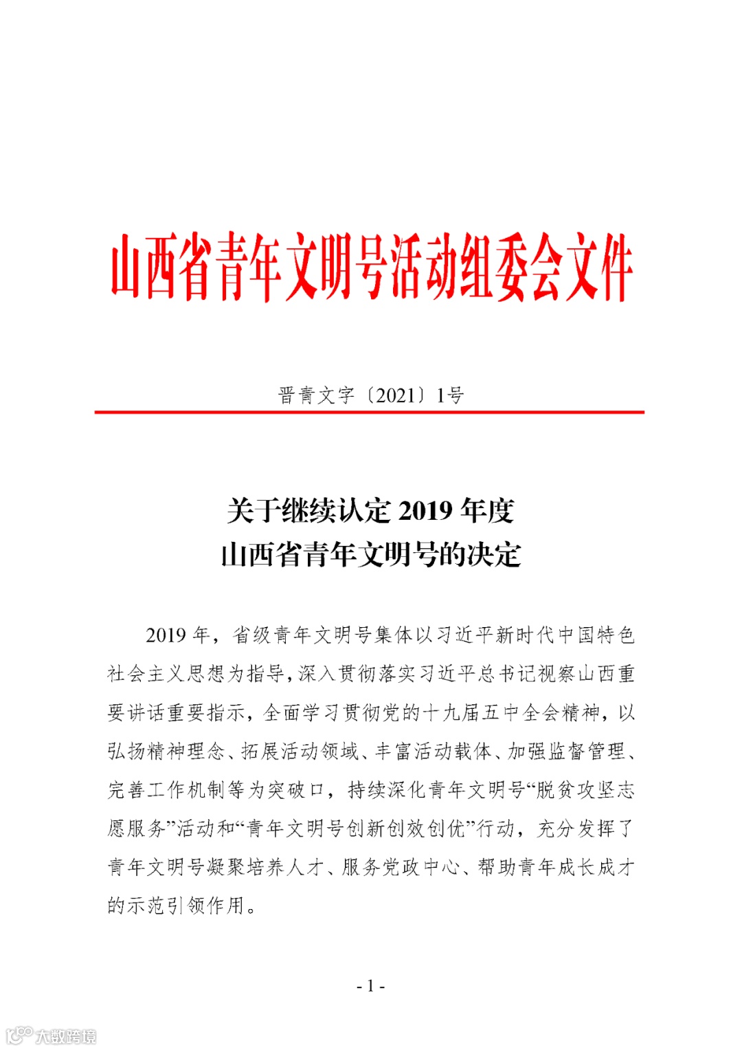 三年坚守,不改初心,珍惜荣誉,再创佳绩。山西股权交易中心有限公司被继续认定为2019年度“山西省青年文明号”,这是中心连续第三年获得该荣誉称号!