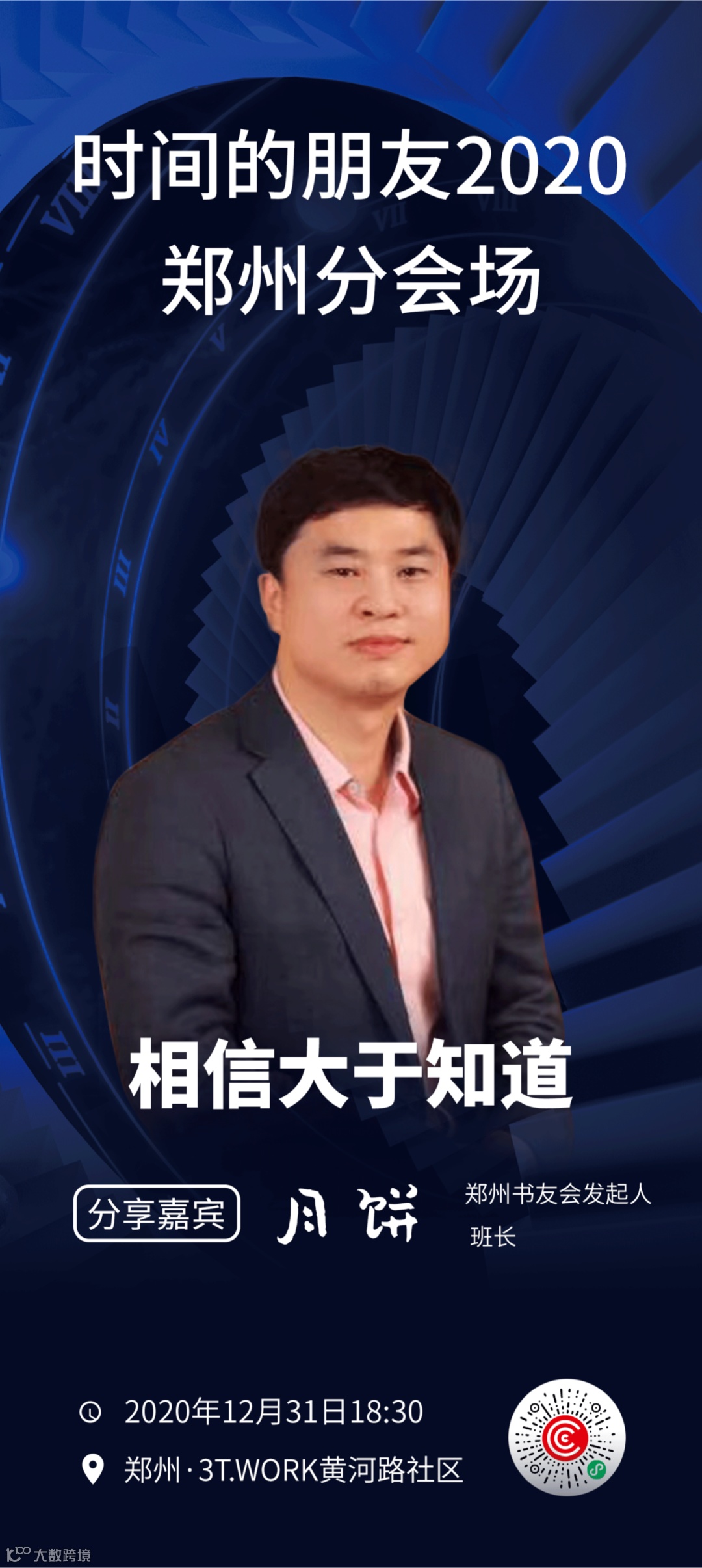 2020年12月31日18:30,“时间的朋友”跨年演讲郑州分会场,于3T.WORK东方大厦创业社区和3T.WORK科技信息大厦创业社区2个场地同时举行!