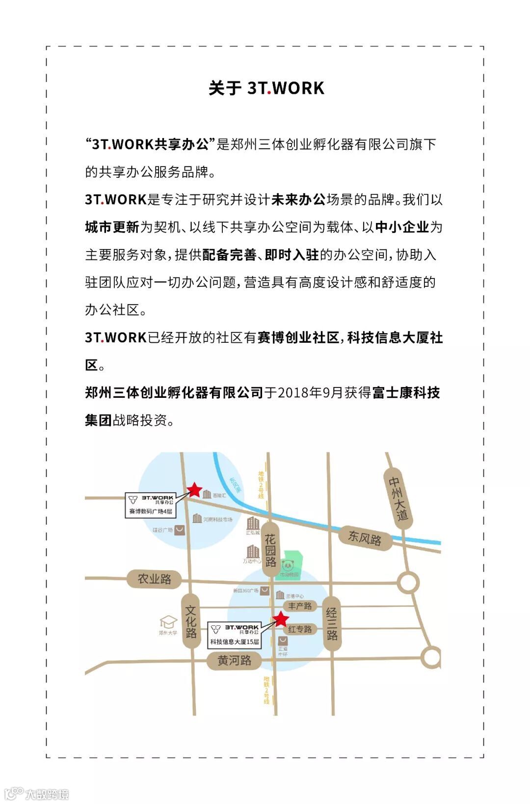“我们不仅能够提供配备完善、拎包入驻的办公场所,还能够为入驻企业提供一站式企业级管家服务!3T.WORK不仅是一个具有高度设计感和舒适感的办公空间,也是一个具有高粘度、高品质商业资源的互动社群!”