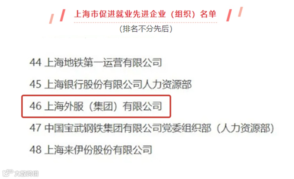 导读:日前,上海外服(集团)有限公司(以下简称“上海外服”)荣获上海市政府授予的“上海市促进就业先进企业(组织)”称