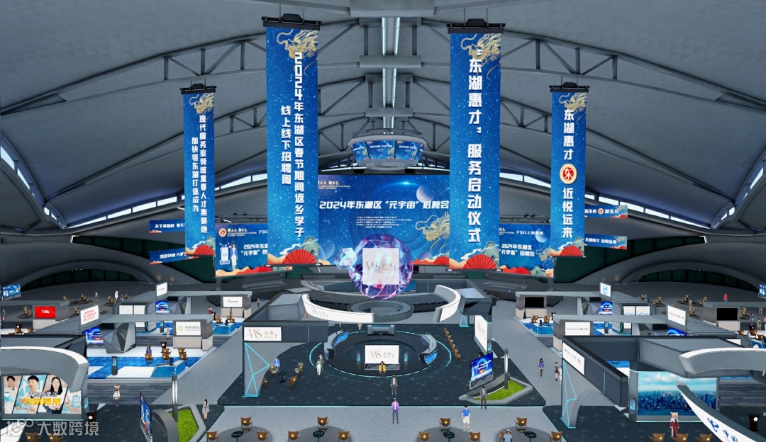 本场“赣未来 新生长”——2024年江西省南昌市东湖区“凌佳佳元宇宙招聘会”作为上述元宇宙招聘会走出上海,走向全国的一次成功落地,不仅依托3D游戏引擎、AI、云计算等技术在虚拟空间搭建了真实的招聘求职场景,更是成功尝试元宇宙招聘会+线下实体招聘会并行的方式,实现同一时刻线上线下启动仪式精准同步开启、元宇宙招聘宣讲同步至线下招聘场馆大屏等一系列创新举措,为青年求职者呈现出一场具有科技感、未来感的招聘盛宴。