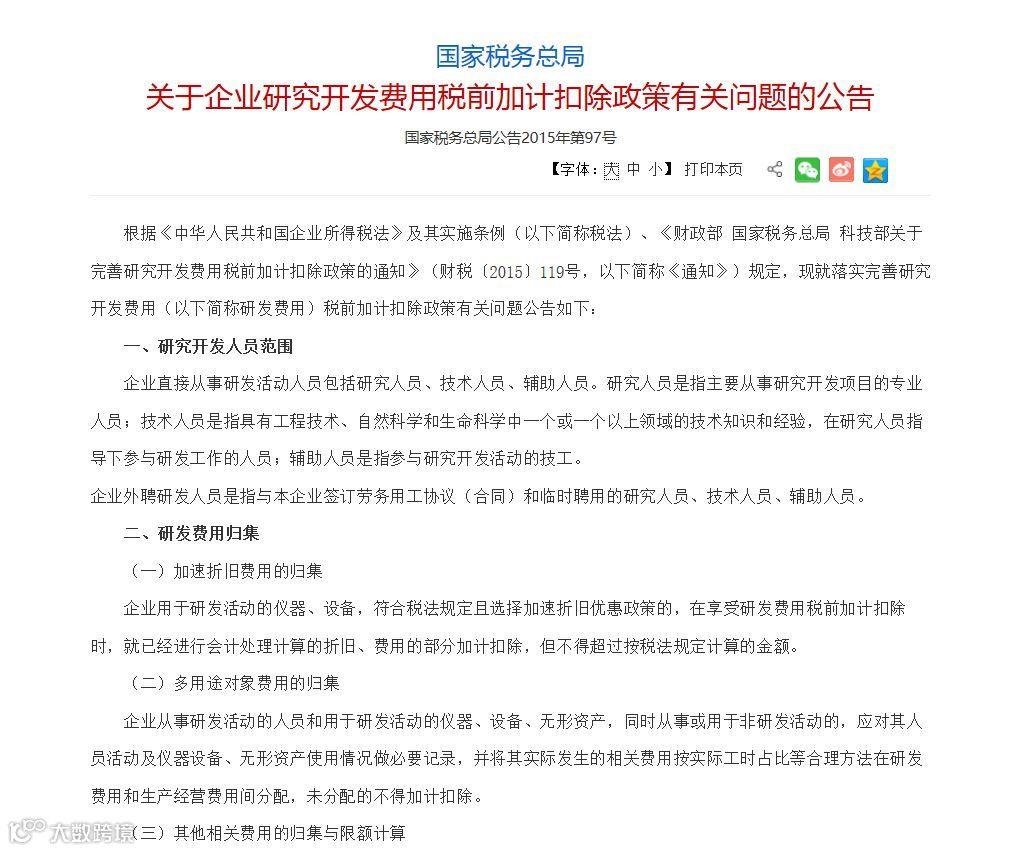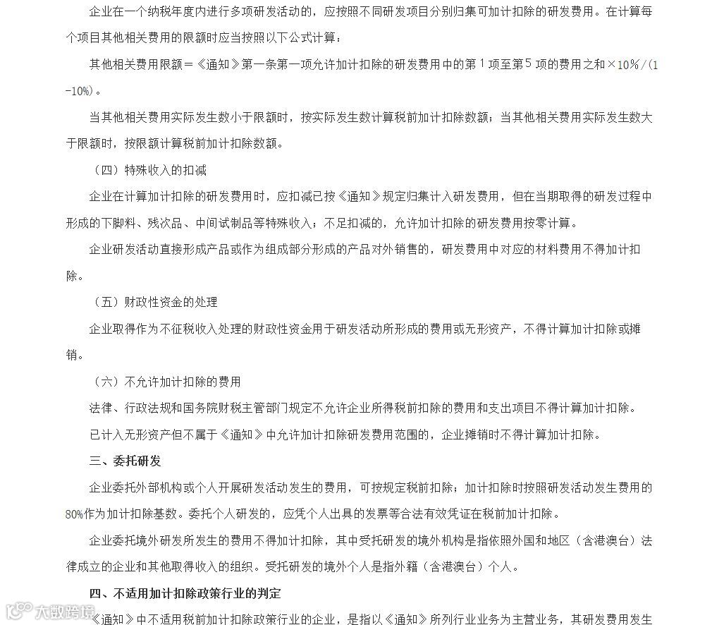 关于完善研究开发费用税前加计扣除政策的通知(部分)