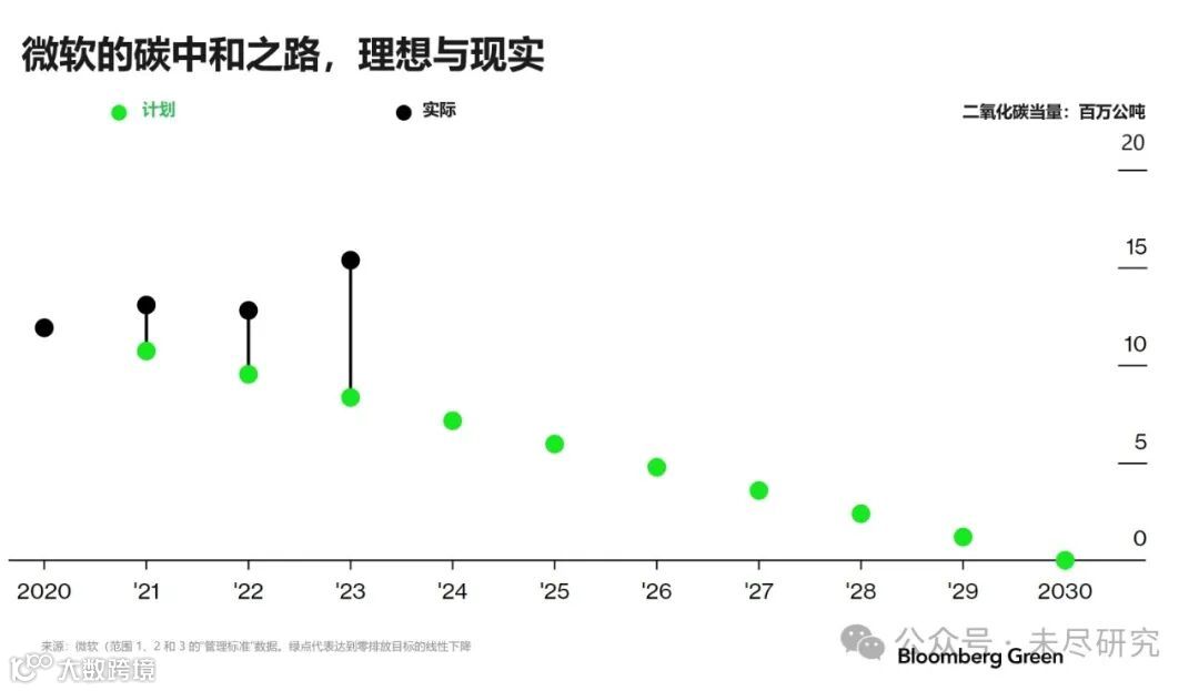 微软、谷歌、亚马逊这三家科技巨头,都制定了雄心勃勃的碳中和计划。微软号称从2030年之后要实现负碳,谷歌的目标是2030年实现7X24的绿电。但是,因为这几家都在AI算力基础设施上投入巨资,耗电量迅速增加,二氧化碳排放不但没有降低,反而在增加。