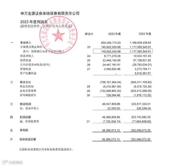 尽管业务排名居前,2023年,申万宏源证券承销保荐业务收入有所承压