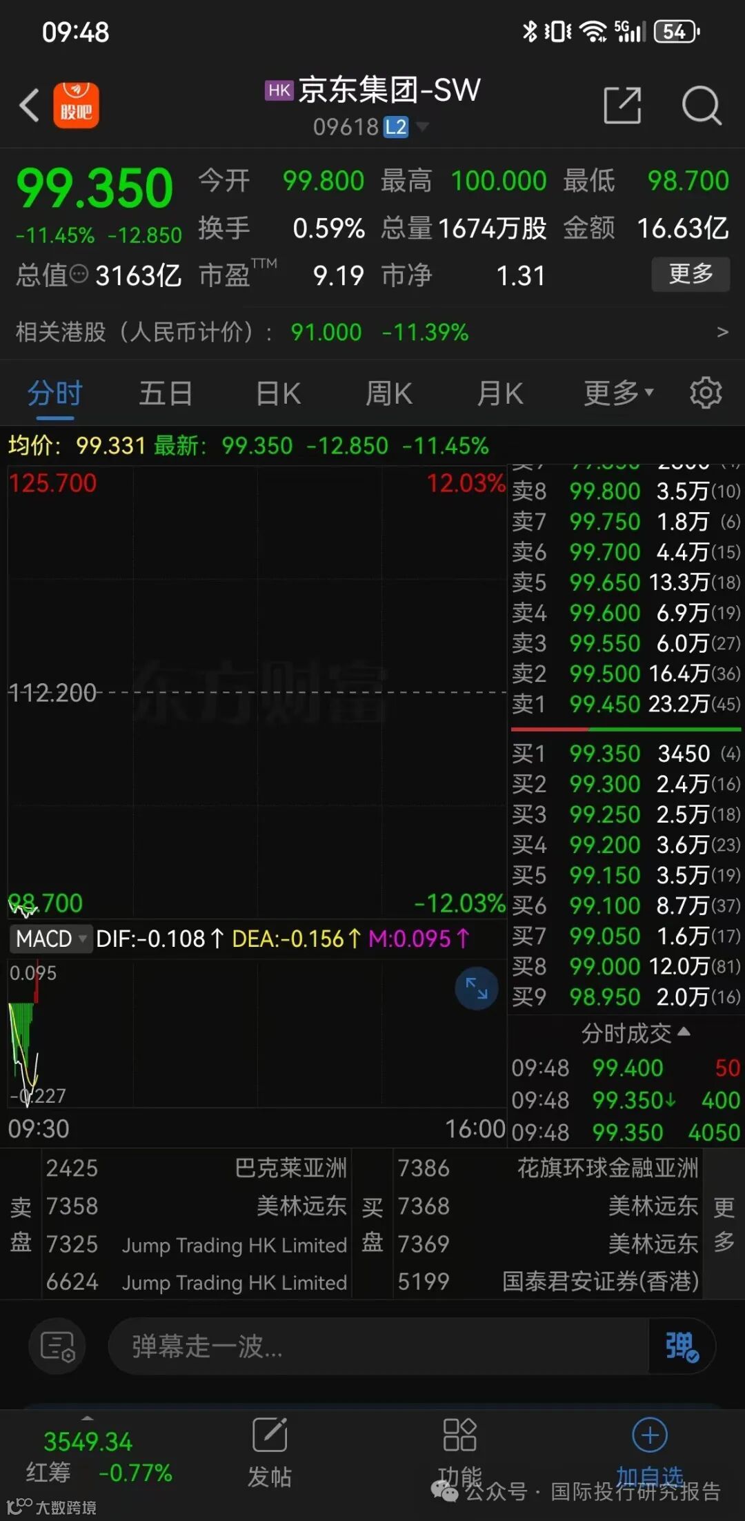 1 、沃尔玛正寻求通过出售其在中国电子商务公司京东公司的股份来筹集高达 37.4 亿美元的资金。京东在美股交易时段和盘后都大跌,目前港股跌了 10.87%。