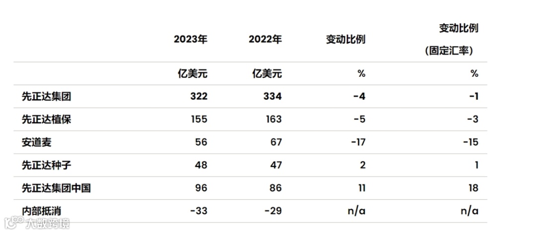 撤回IPO申请的同时,先正达于3月29日公布了2023年全年财务业绩:全年公司营业收入322亿美元(约2325亿元人民币),同比下降4%(按固定汇率计算下降1%);全年EBITDA(该数据剔除了对公司后续经营没有影响的其他一次性或非现金/非经营性项目,并剔除了领导层长期激励计划的影响)为46亿美元(约332亿元人民币),较2022年历史最高水平下降18%(按固定汇率计算下降14%)。