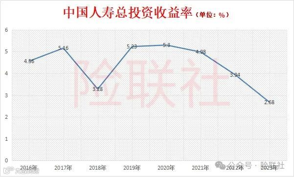 从2016年到2023年,中国人寿总投资收益率分别为4.56%、5.16%、3.28%、5.23%、5.3%4.98%、3.94%和2.68%,净投资收益率分别为4.61%、4.91%、4.64%、4.61%、4.34%、4.38%、4%和3.77%。