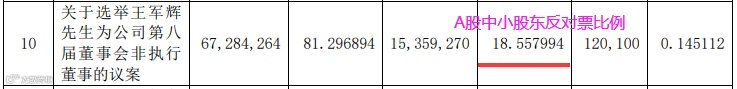 不过加上A股,反对票比例合计为8.2%,同意票为91.73%,最后王军辉还是成功当选非执行董事。