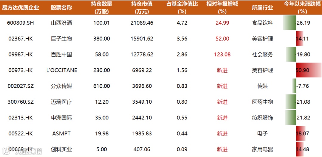 比如易方达优质企业的腰部股中,9支中有6支都是上半年新买进的标的,