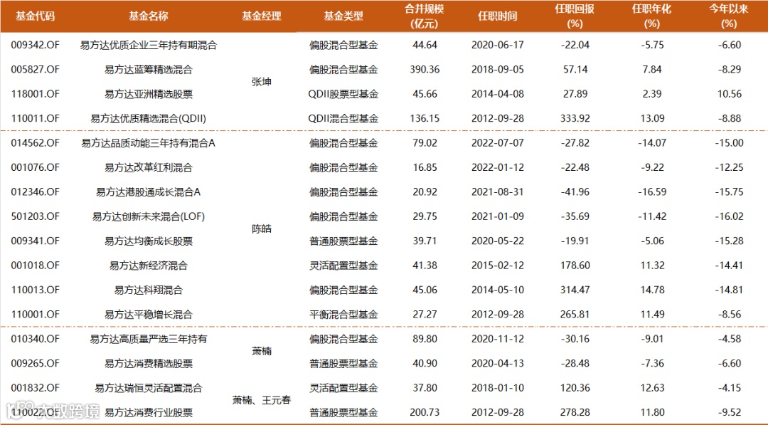 陈皓管理的产品在今年表现落后,除易方达平稳增长外的7支基金年内跌幅都达到了双位数;
