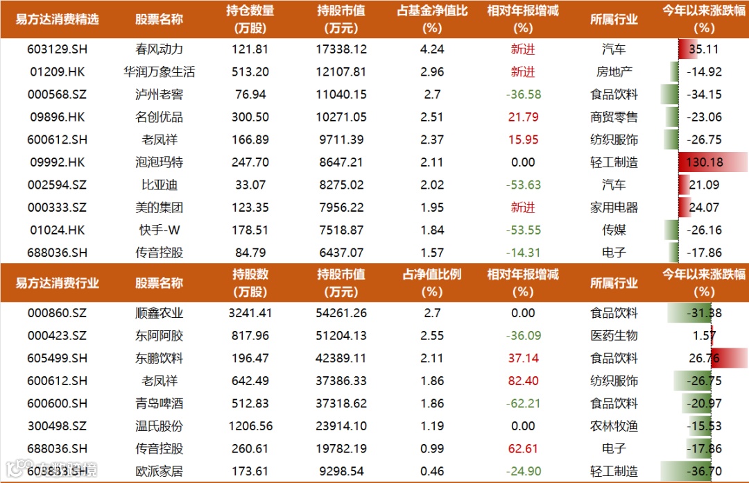 在消费基金上调仓动作非常少,尤其是易方达消费行业,持仓调整很少。