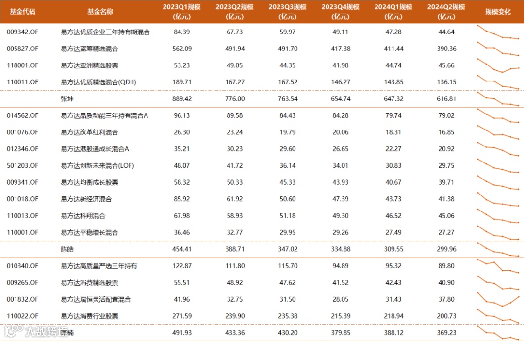 易方达“三剑客”的管理规模在上半年仍在继续下降。