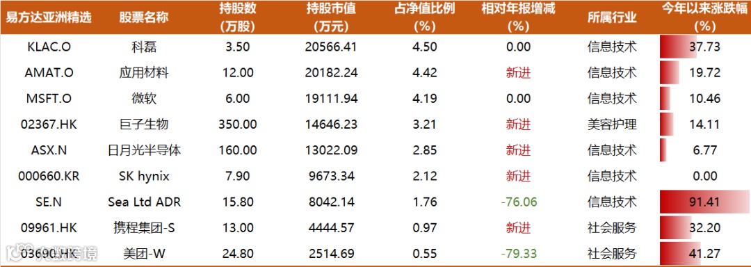 从易方达亚洲精选来看,张坤在这支QDII上的配置上,体现了对半导体行业的偏好。