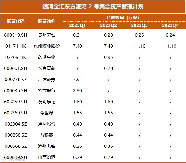 “银河东方港湾1号”四季度减持了700股贵州茅台,相当于原本持股数量的三分之一。
