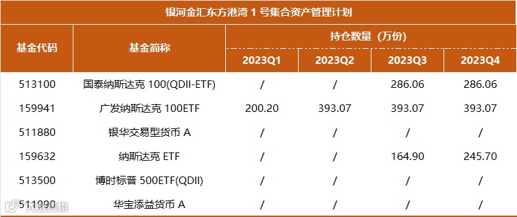 对于这三支纳指100ETF,“银河东方港湾1号”、“银河东方港湾2号”在2023年基本是采取逐季加仓的动作。