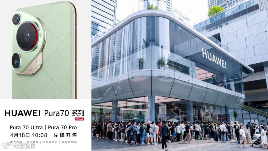 没有任何宣发,4月18日10:08分,Pura 70系列直接上架,各地华为店头排起长长的人龙,一机难求。