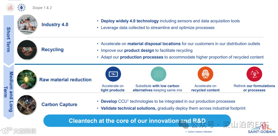 法国聖戈班是全球最大的建筑材料上市公司,他不仅有明确的2050碳中和目标,而且对于如何达成碳中和有明确的roadmap(路径规划)。