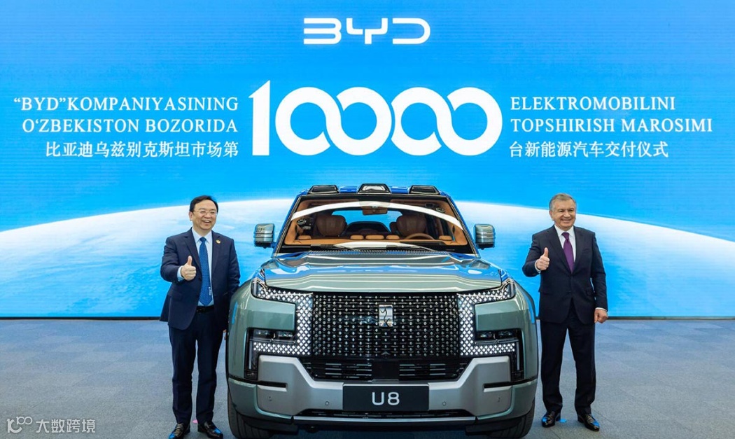 1月25日当日,当米尔济约耶夫到达比亚迪鹏城总部时,他从东道主手中接过一辆售价约为15万美元的比亚迪豪华SUV——仰望U8的车钥匙。事实上,这台车也是王亲手向米尔济约耶夫交付的比亚迪在乌兹别克斯坦的第10,000辆新能源汽车。
