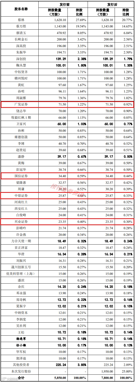蔡林直接持有公司16,201,025股股票,占公司股份总额的27.69%,为公司第一大股东;蔡万煜系蔡林兄弟,直接持有公司11,430,000股股票,占公司股份总额的19.54%,为公司第二大股东;廖清玉系蔡林配偶,直接持有公司4,709,160股股票,占公司股份总额的8.05%,为公司第三大股东。三人合计持有公司32,340,185股股份,占公司总股本的比例为55.28%。