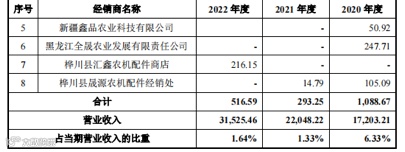 据招股书披露,全晟农业成立于2019年1月18日,2020年与联适技术交易金额247.71万元,并于今年5月份注销;汇鑫农机成立于2022年3月11日,2022年与联适技术交易216.15万元,目前仍存续;晟源农机成立于2020年8月19日,2020-2021年与联适技术分别交易105.09万元、14.79万元,目前仍存续。