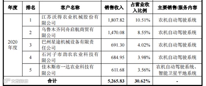 同年,公司向第四大客户石河子市劲农农业科技有限公司(下称“劲农农业”)销售农机自动驾驶系统产品,销售金额为684.95万元,占比3.98%,而据企查查,该公司于2020年11月16日才刚刚成立,不到两个月时间便成为联适技术的大客户之一。