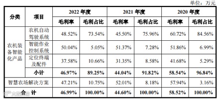 毛利率下滑的主因则是产品价格的下跌,2020年-2022年,公司主要产品农机自动驾驶系统产品平均销售单价为1.98万元/套、1.07万元/套、0.84万元/套,两年时间下降了57.6%。