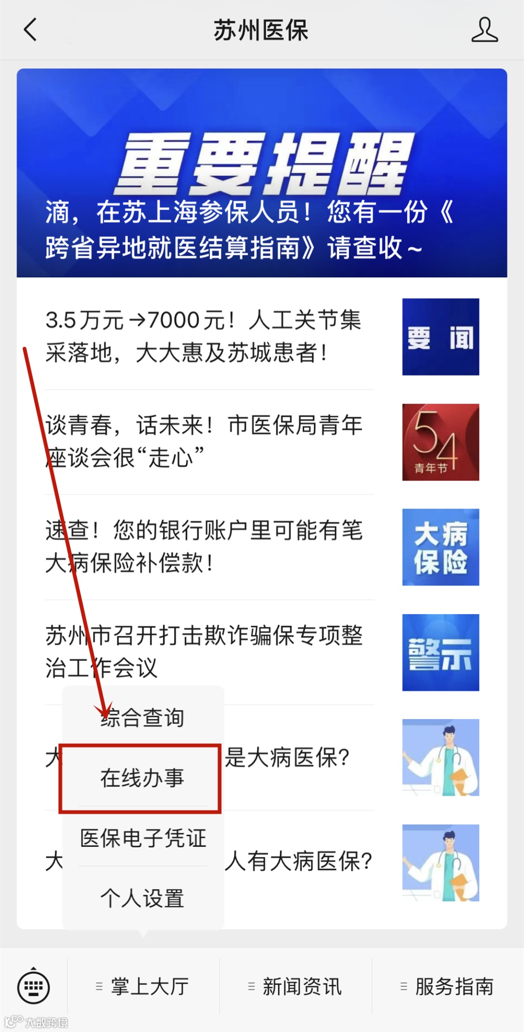 5.对因自身需要,确需尽快办理零星报销手续的,建议优先通过网上办。参保人员可关注“苏州医保”微信公众号(适用于市本级姑苏区、高新区、吴中区、相城区参保人员),点击掌上大厅——在线办事——零星报销模块线上办理报销业务。