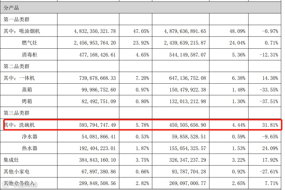 不过,洗碗机则实现逆势大增,营收同比增长31.8%,总体来看,洗碗机的占比仍小,占营收比重的不到6%。
