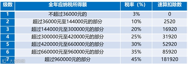▼个人所得税税率表一 (综合所得适用)