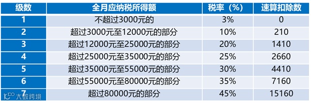 ▼按月换算后的综合所得税率表