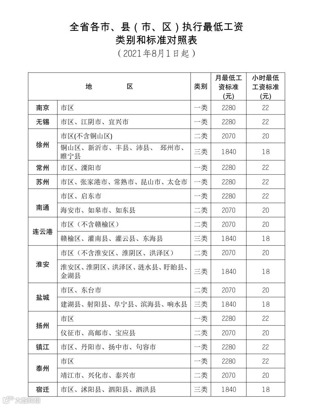 根据《最低工资规定》(原劳动保障部令第21号)和《江苏省工资支付条例》规定,经省人民政府同意,从2021年8月1日起调整全省最低工资标准。现就有关事项通知如下: