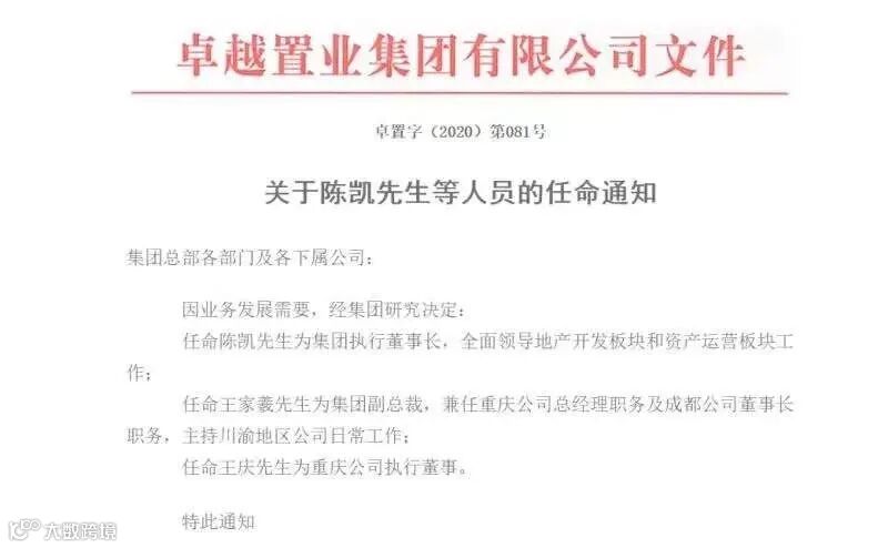 最近几个月,卓越集团的高管变动很密集,而且很蹊跷。