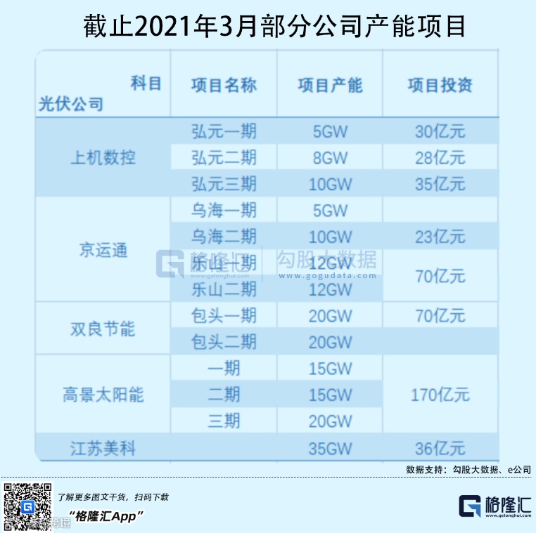 还有非上市公司也看上了硅片大蛋糕。高景太阳能投资170亿元建设40GW硅片产能,江苏美科斥资36亿元建设35GW产能。