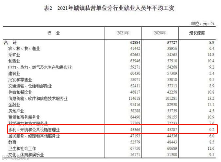 近日,国家统计局公布2021年城镇非私营单位、城镇私营单位就业人员年平均工资水平及规模以上企业分岗位就业人员年平均工资情况。其中,环保类相关行业从业人员平均工资依然倒数,工资增速甚至垫底。同时,从2020年和2021年的整体对比数据能够看出,环保类整体呈现国企平均工资相对高于民企。