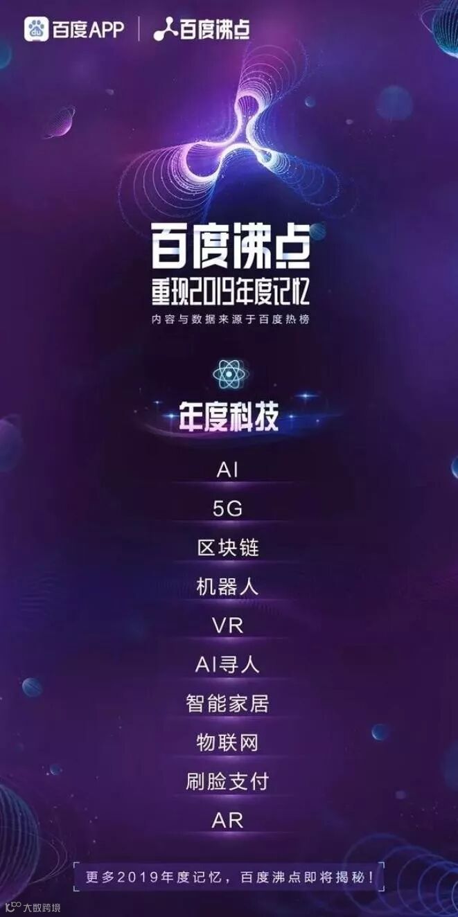 百度沸点2019年度榜单12月9日启动发布,率先发布的是“百度沸点2019年度科技热词”: