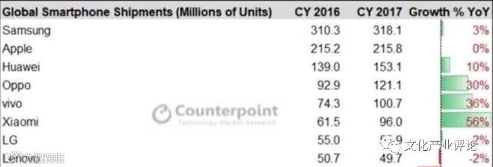从国际市场来看,2017年世界销量前10中,中国6家品牌入围,占据大半壁江山,OV双双入场,位居第四、第五位。由于oppo与vivo系出同门,很多媒体将其合称为“OV”,从这个层面看,无论是国内市场还是国际市场,“OV”合力都不容小觑,颇有兄弟齐心、其利断金的意味。