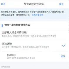 以上这条看似福利政策,但是对于综合所得低(甚至可能未达到起征点)的某些个人而言,可能会产生额外税收。并入还是不并入是个选择,达到多少所得选择并入是个有点复杂的计算,而因为每个人的扣缴情况不一样,这个阀值其实因人而异。所以取巧的方法就是:在单位发放年终奖时先作为全年一次性奖金收入预扣预缴,不要并入当年综合所得,那么在个税app中做年度汇算清缴时允许“反悔”改成“全部并入综合所得计税”,切换一下两种算法,试算一下哪种选择的结果对自己更有利。注意:如果预扣预缴时采用了并入综合所得,在汇算清缴时就没办法“反悔”重新选择“单独计税”了。